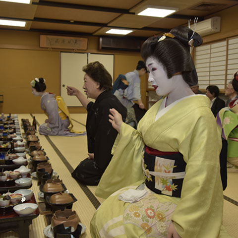 京都より芸妓、舞妓さんをお招きし、 当店広間での宴席に興を添えて頂きました。